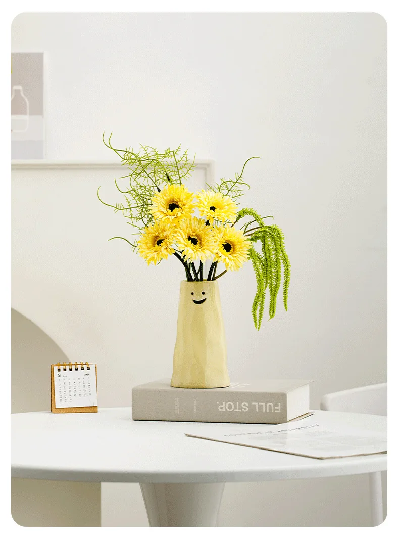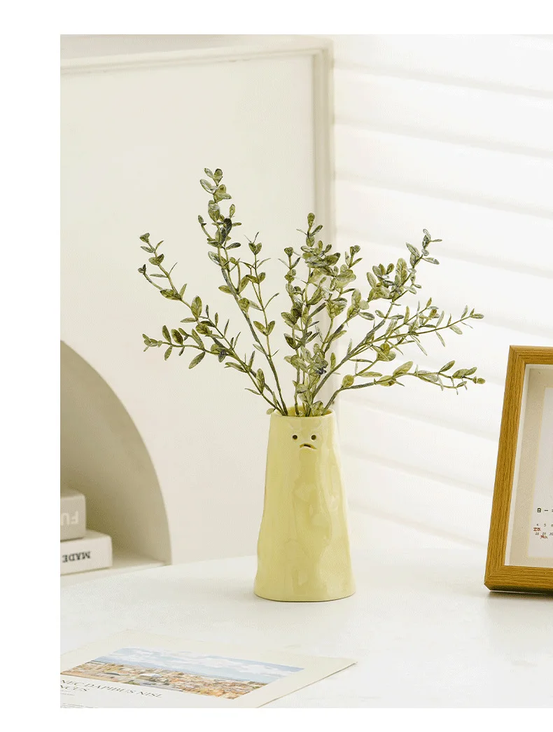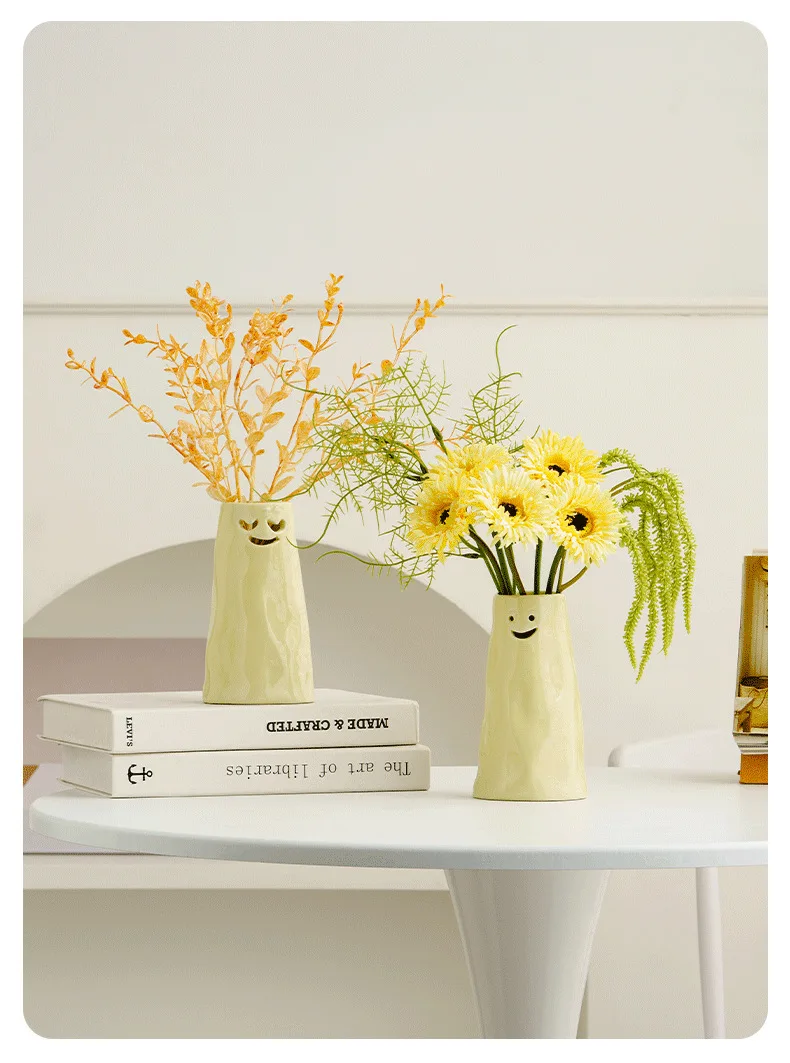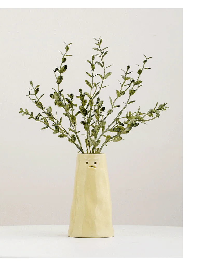 Our vases are finished in a beautiful, creamy yellow hue that instantly creates a warm and cheerful atmosphere. The funny facial expressions are carved directly into the ceramic, making each piece a delightful conversation starter.